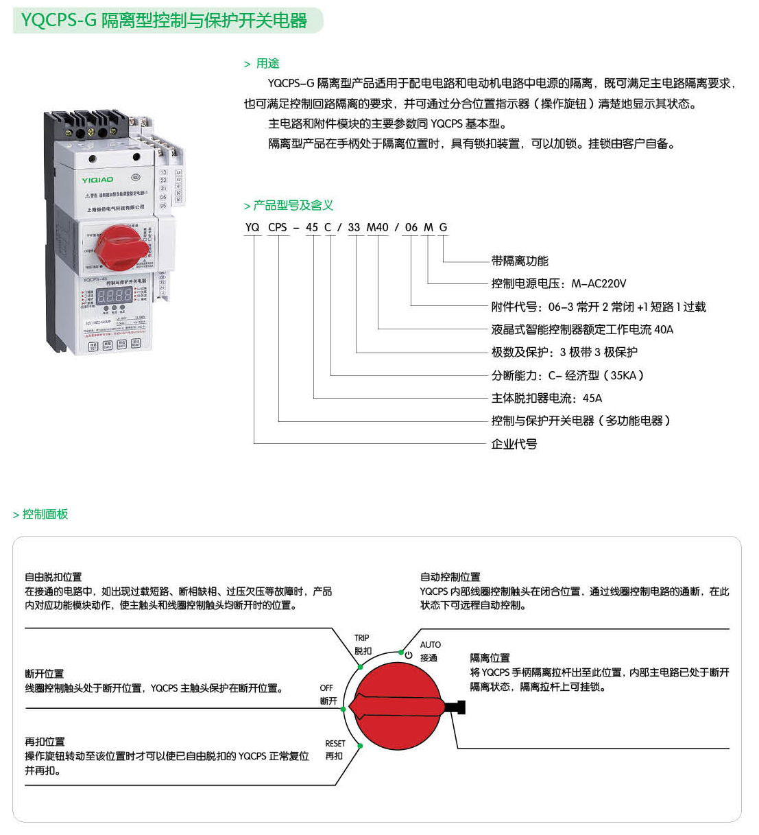 YQCPS-G隔離型控制與保護(hù)開(kāi)關(guān)電器