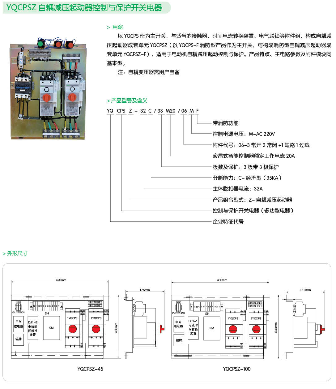 YQCPSZ自耦減壓起動(dòng)器控制與保護(hù)開(kāi)關(guān)電器
