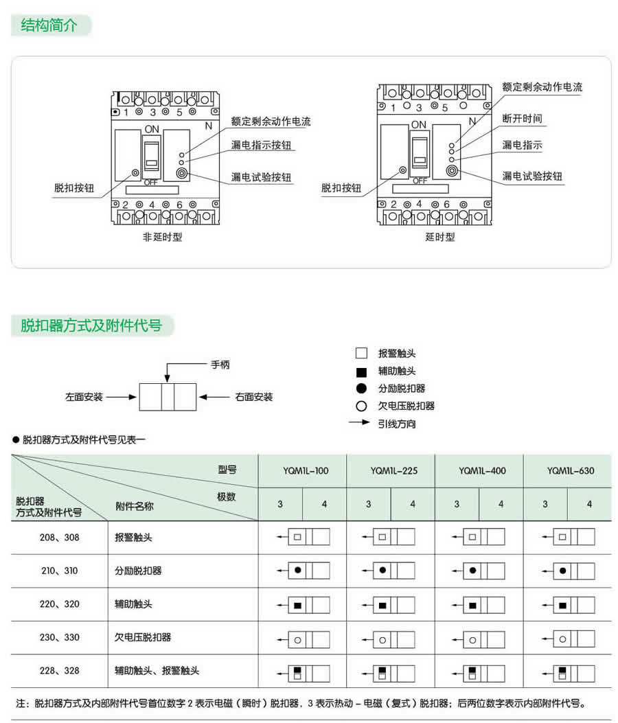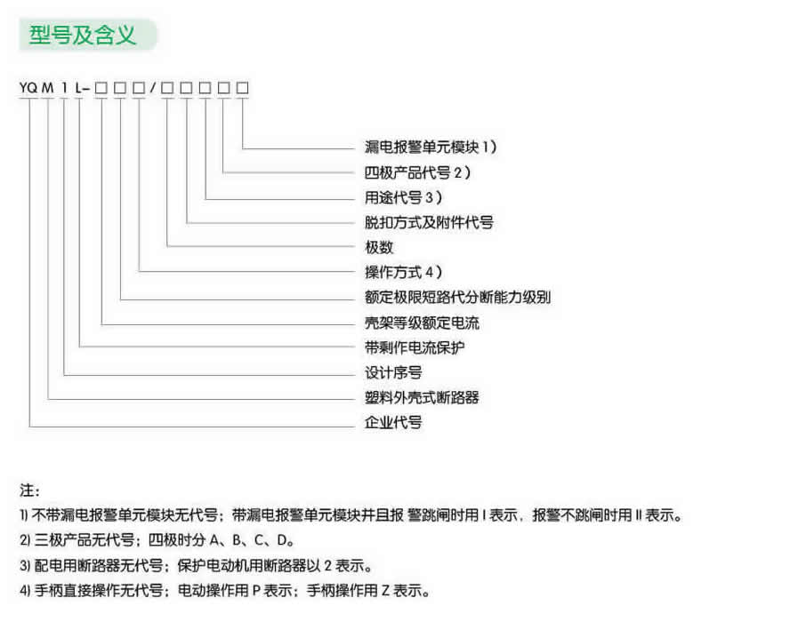 YQM1L 系列帶剩余電流保護(hù)塑料外殼式斷路器(以下簡稱斷路器),是我司采用國際先進(jìn)設(shè)計、制造設(shè)計研制、開發(fā)的新型斷路器之一。其額定絕緣電壓為800V,適用于交流50Hz, 額定工作電流至800A 的電路中作不頻繁轉(zhuǎn)換及電動機不頻繁起動之用。